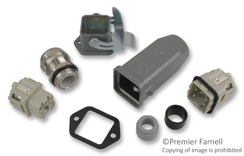 • Kit Contents: Han 3A Hood, M20 Cable Gland & Han 4A 4Pos+PE Inserts
