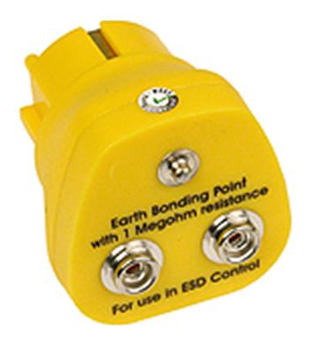 DESCO EUROPE / VERMASON - 231125 - Earth Bonding Plug, 1 x 4mm Press Stud, 2 x 10mm Studs, 1Mohm Resistor, EU Plug