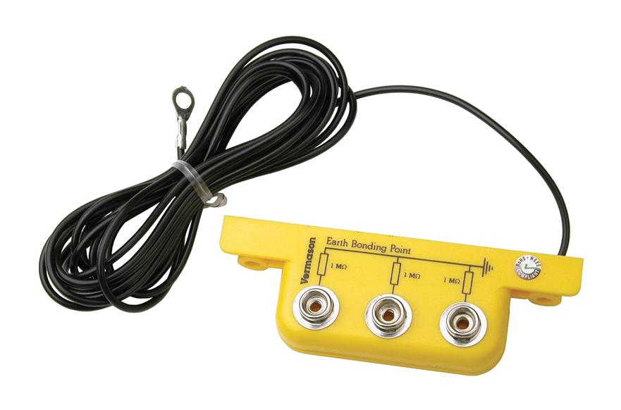 DESCO EUROPE / VERMASON - 231345 - Earth Bonding Point Bar, 3 x 10mm Studs, 1Mohm Resistor, 3m Ring Terminal Lead