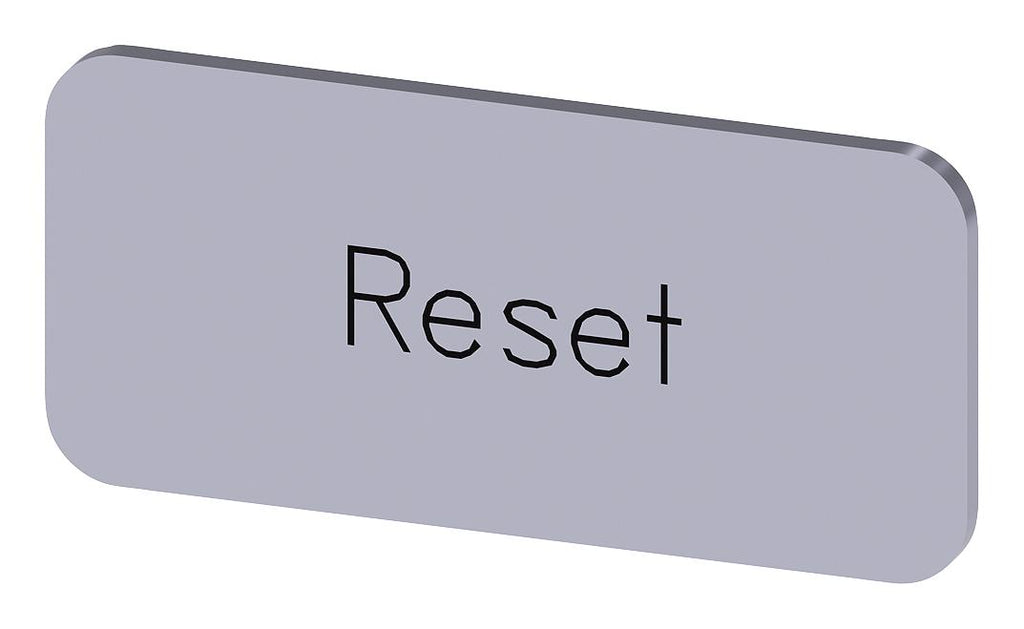 SIEMENS - 3SU1900-0AC81-0DU0 - Labelling Plate, " Reset ", Silver Label, Black Font, Snap on/Stick, 27 mm W x 12.5 mm H