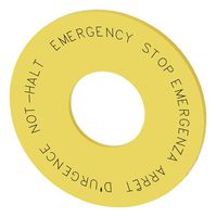 SIEMENS - 3SU1900-0BN31-0NC0 - Backing Plate, "Not-Halt/Emergency Stop/Arret d'Urgence/Emergencia", Yellow, 22.5 mm ID x 60 mm OD