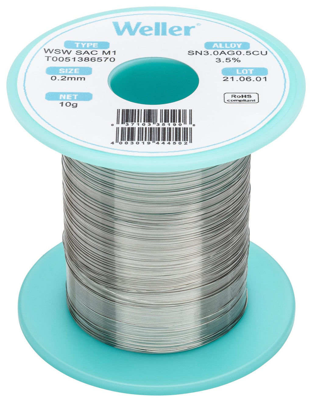 T0051402599 Solder Wire, 96.5/3/0.5 Sn/Ag/Cu, 100g Weller