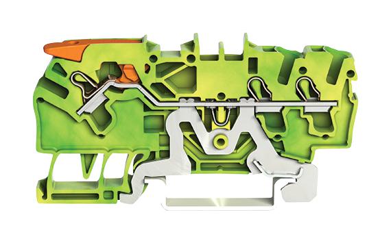 WAGO - 2102-1307 - DIN Rail Mount Terminal Block, Ground, 3 Ways, 22 AWG, 12 AWG, 2.5 mm², Clamp, 24 A