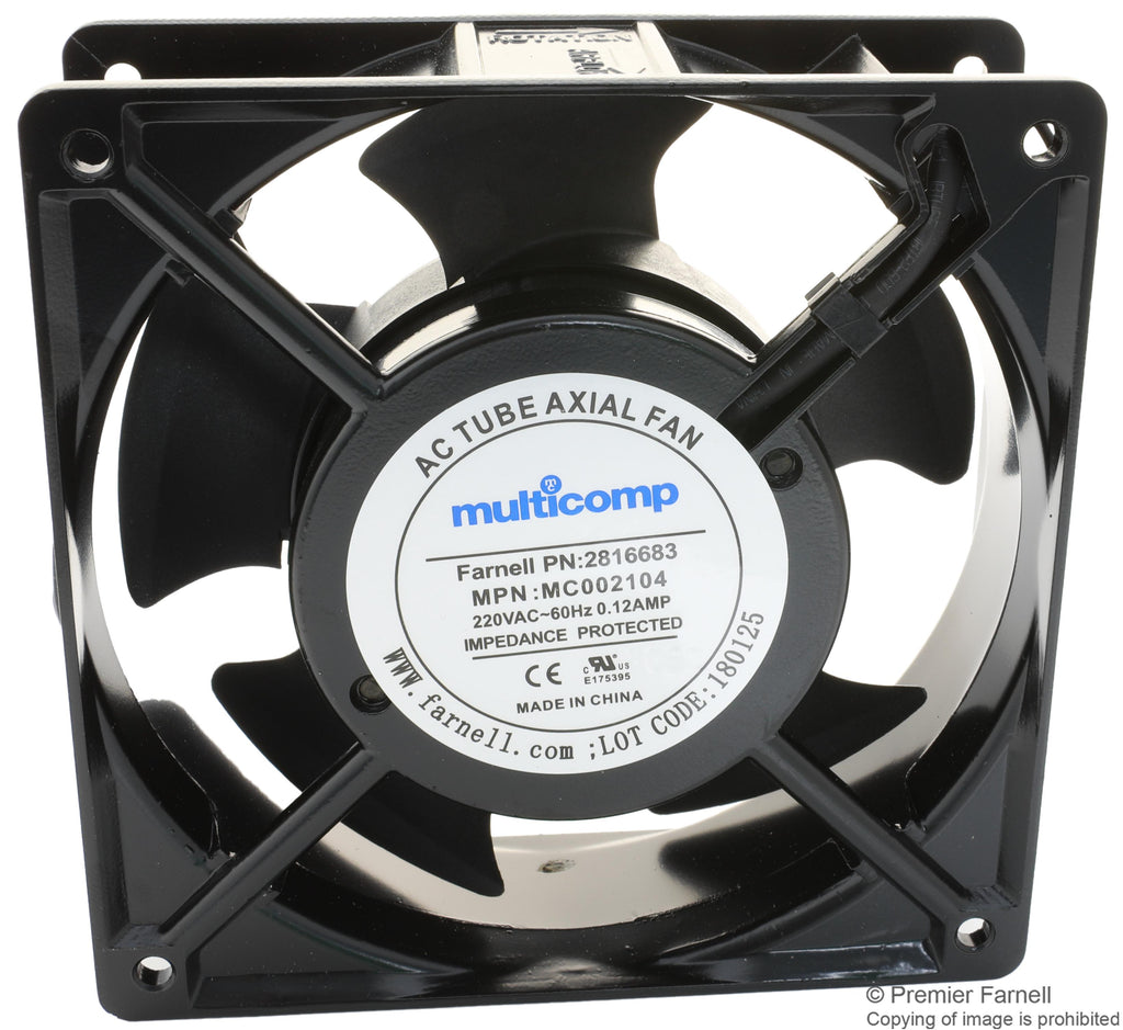MULTICOMP PRO - MC002104 - AC Axial Fan, 220V, Square, 120 mm, 38 mm, Ball Bearing, 92 CFM