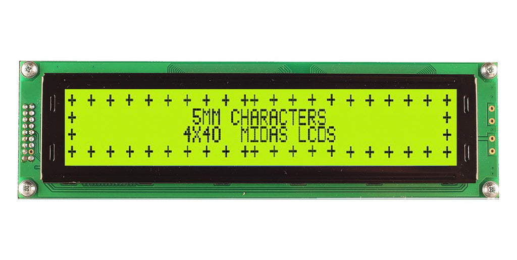 MIDAS - MC44005A6W-SPTLY3.3-V2 - Alphanumeric LCD, 40 x 4, Black on Yellow / Green, 3.3V, Parallel, English, Japanese