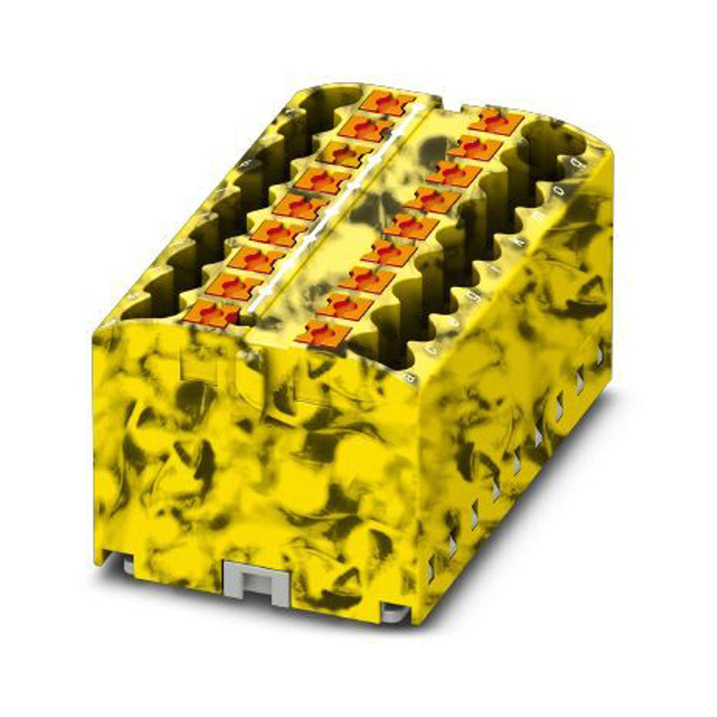PHOENIX CONTACT - PTFIX 18X2,5-FE - Panel Mount Barrier Terminal Block, Yellow, Black, 24 A, 450 V, 18 Pole, Push In, 12 AWG