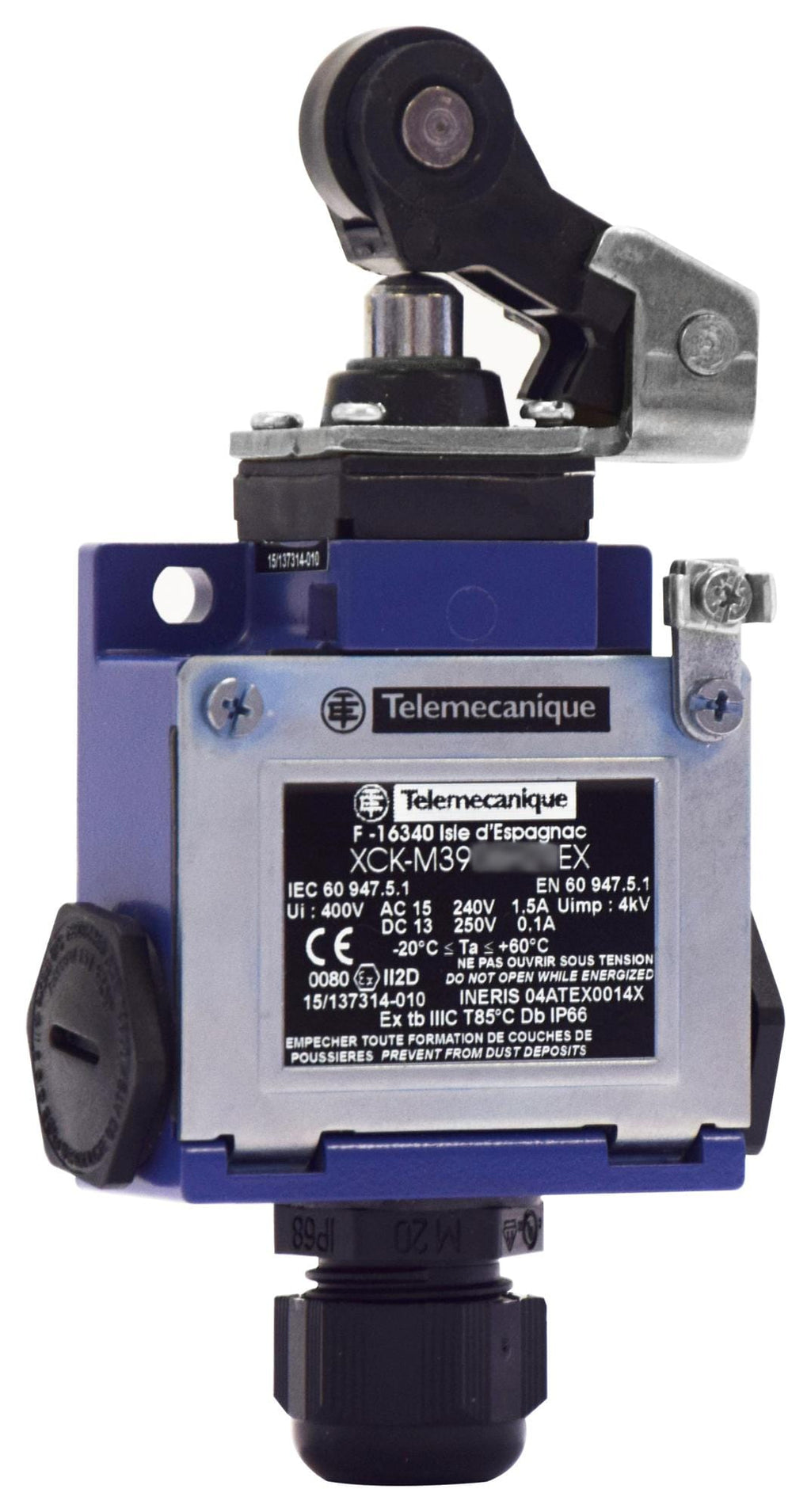 TELEMECANIQUE SENSORS - XCKM3921H29EX - Limit Switch, Roller Lever Plunger, DPST-NC, SPST-NO, 1.5 A, 240 V, 8 N, OsiSense ATEX D