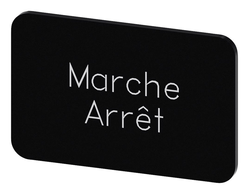 SIEMENS - 3SU1900-0AD16-0GU0 - Labelling Plate, " Marche Arret ", Black Label, White Font, Snap on/Stick, 27 mm W x 17.5 mm H