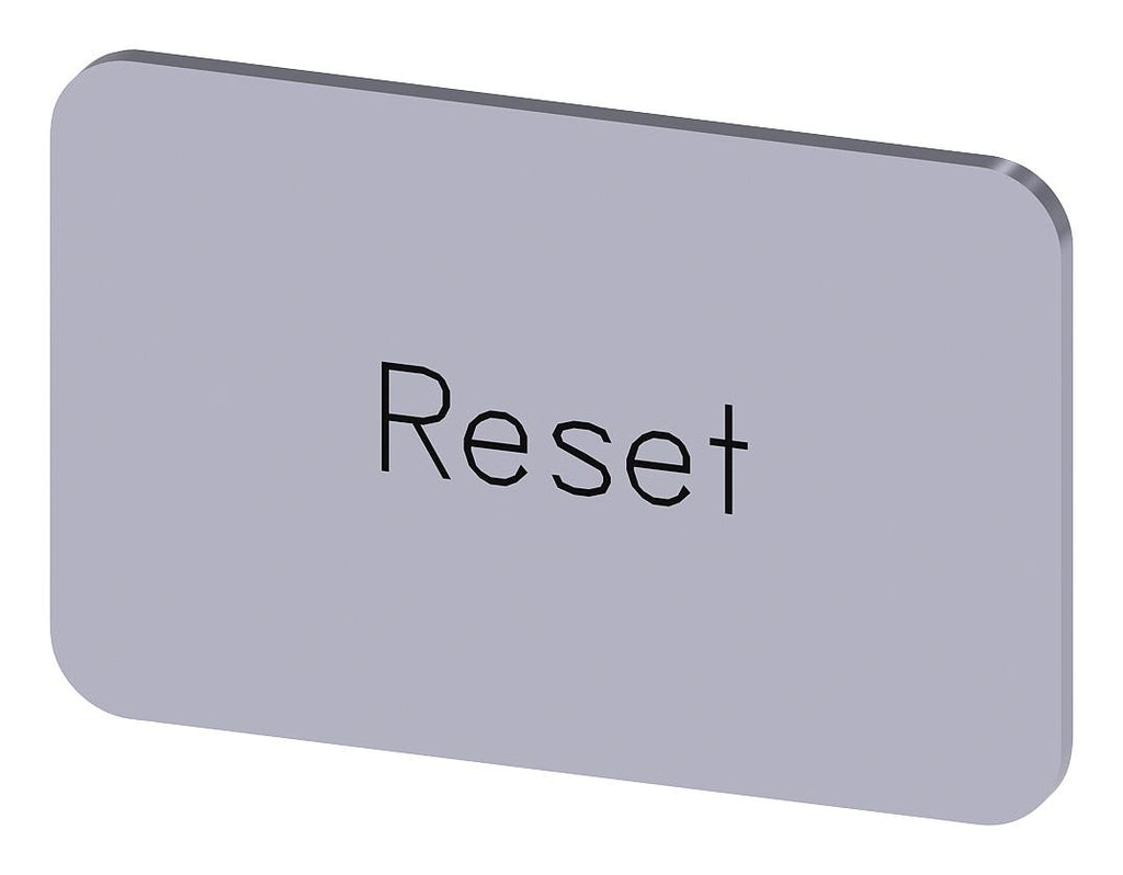 SIEMENS - 3SU1900-0AD81-0DU0 - Labelling Plate, " Reset ", Silver Label, Black Font, Snap on/Stick, 27 mm W x 17.5 mm H