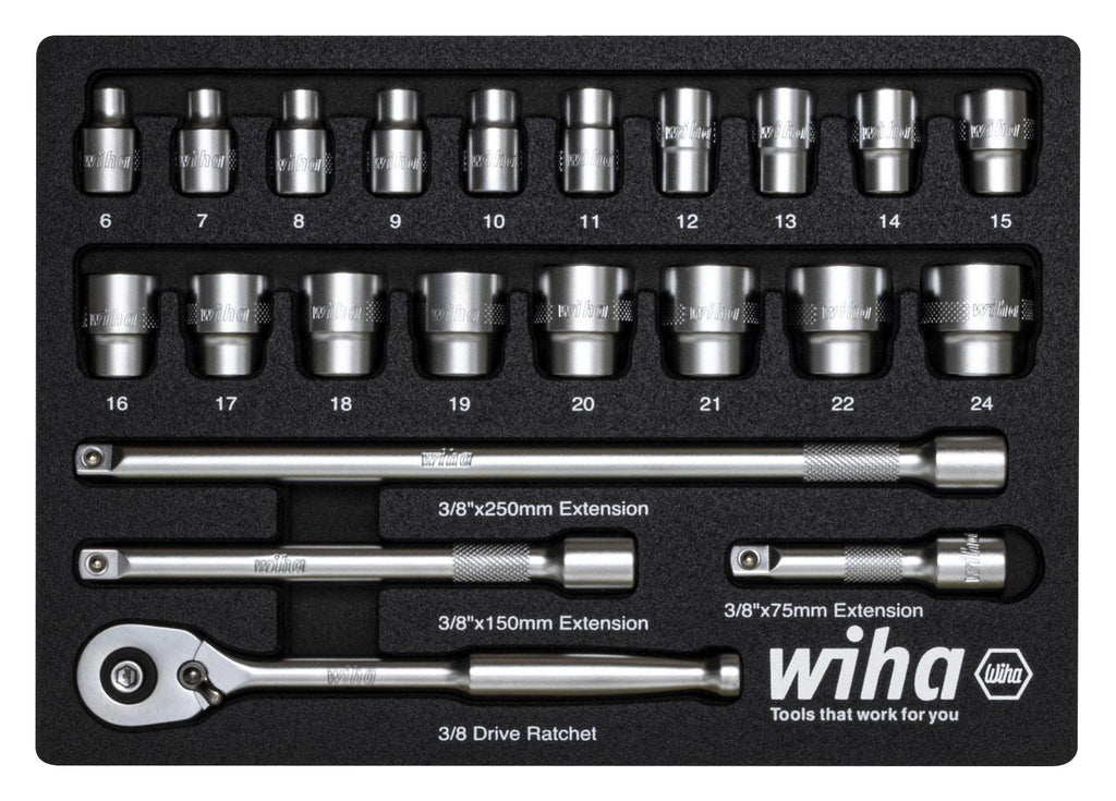 WIHA - 44708 - Wrench Set, Ratchet, 23 Pieces, 3/8"