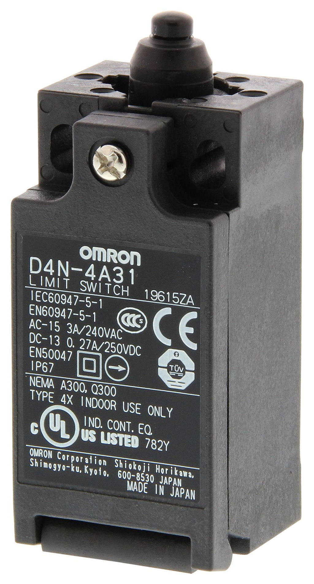 OMRON - D4N1131 - Limit Switch, Miniature, Top Plunger, SPST-NC, SPST-NO, 3 A, 240 V, 6.5 N, D4N