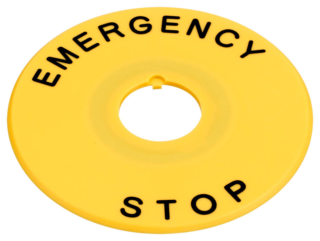 IDEC - HAAV4-27 - Legend Nameplate, XA Series E-Stop Switches, 40 mm Mushroom, EMERGENCY STOP, Black/Yellow, Polyamide