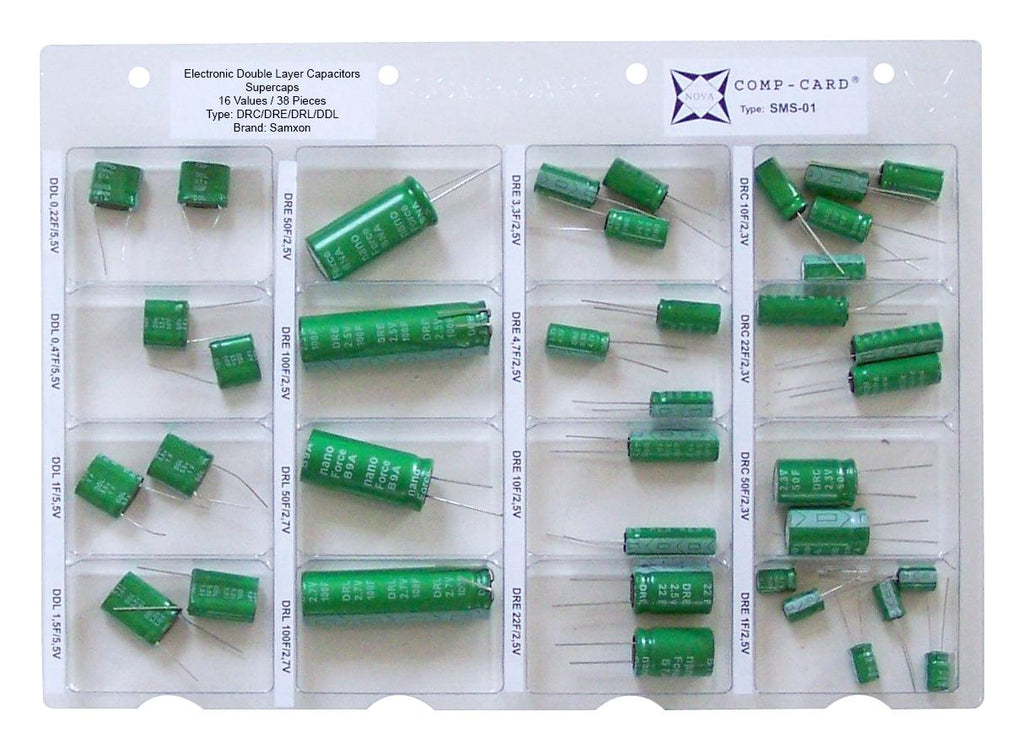 NOVA - SMS-01 - Capacitor Kit, Supercapacitors, EDLC, 16 Values, COMP-CARD Series, 0.22F to 100F, 38 Pieces