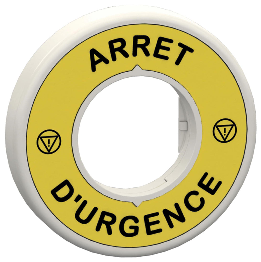 SCHNEIDER ELECTRIC - ZBY9W2M130 - Legend Ring, Illuminated, Harmony XB4 Series, 240 V, Red, 60 mm, E-Stop Switch